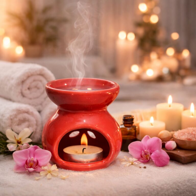 Small Red Ceramic Tea Light Oil Burner